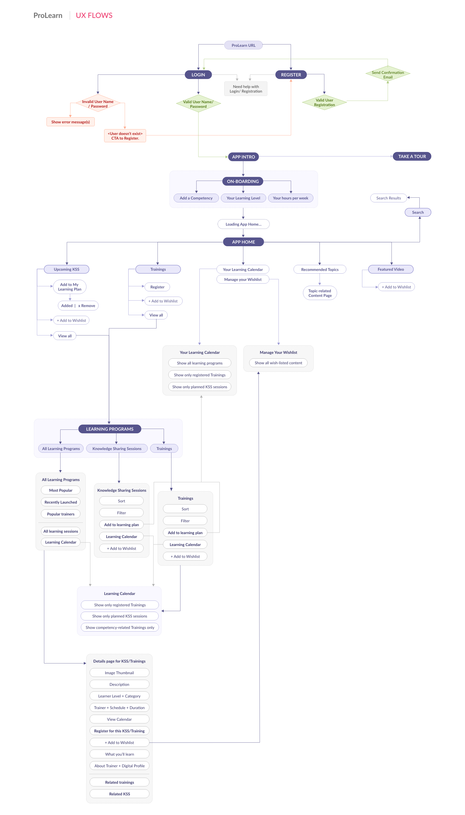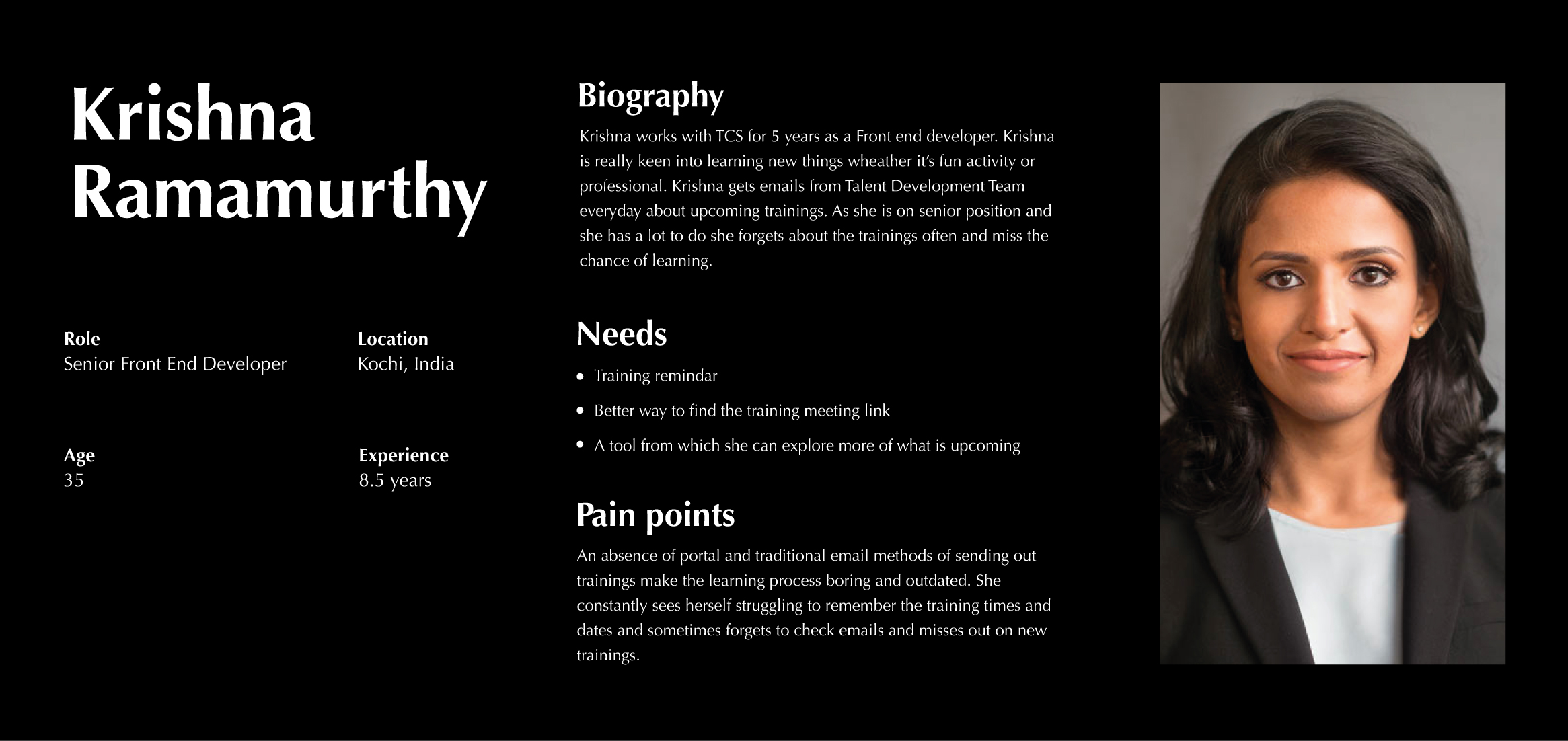 Hence, a team of designers, PO and developers was formed to support TDT. We designers came up with the concept of ProLearn for TCS employees to access the personalised trainings easily. To understand the users more, we conducted user interviews with targeted audiences before developing the concept for ProLearn.